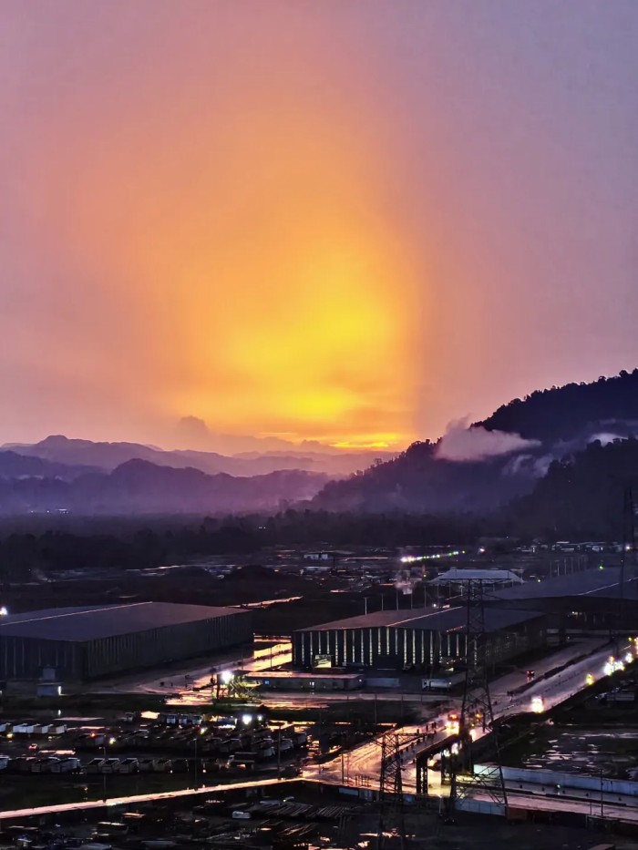 2月是印尼北莫羅瓦利的雨季,一個(gè)大雨后的傍晚,我在巡檢至園區(qū)電廠時(shí)眺望冰鎳廠方向,余暉如金色紗幔,輕柔地披在遠(yuǎn)處的山巒之上。山腳下的北莫羅瓦利基地廠房和道路灑滿了金輝,仿佛工業(yè)與自然的和鳴。我內(nèi)心滿是對(duì)這奇妙融合之景的震撼與沉醉,于是按下快門(mén),定格這一瞬工業(yè)與自然交織的詩(shī)意時(shí)刻,記錄這份工作日常中的美。