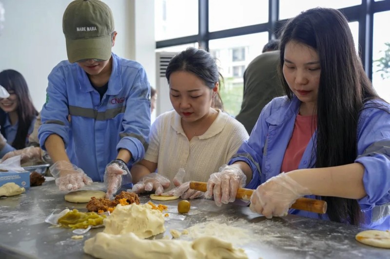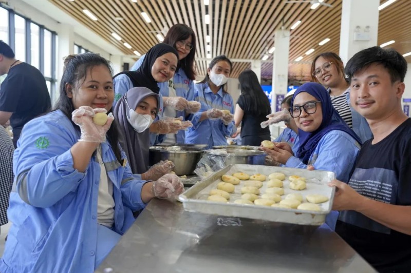 為了給大家創(chuàng)造美好的節(jié)日記憶,莫羅瓦利產業(yè)基地在中秋節(jié)當天開展了“月餅制作活動”。活動現場,中、印尼籍員工齊聚一堂,在專業(yè)廚師的指導下共同制作專屬創(chuàng)意月餅。大家在交流與協作中體驗手作的樂趣,一塊塊月餅不僅承載著節(jié)日的甜蜜,更成為連接不同文化背景員工之間的情感紐帶,進一步加深了團隊情誼與文化理解。