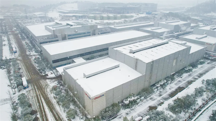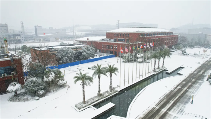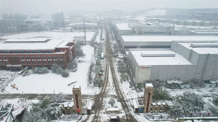 一排排的廠房在銀裝素裹的包裝下